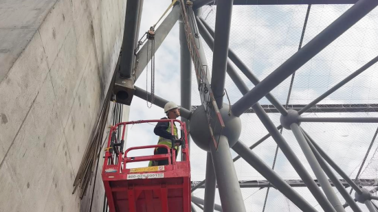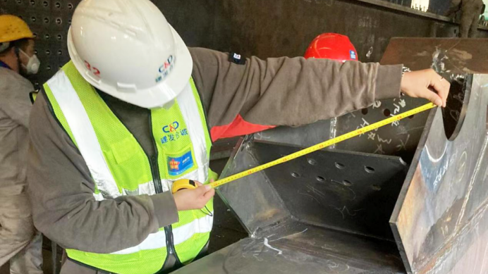 1號機庫鋼結構屋蓋作為項目最大的整體提升單元,重11393噸,機庫門頭桁架單跨最大跨度達269.5米,是目前世界之最,拼裝難度高。建發合誠作為監理單位,嚴格按照系列規范、標準要求進行監理工作,在全過程加強驗收、檢查,做好安全把控,護航提升順利完成。合誠檢測作為第三方檢測機構,也通過嚴格縝密的鋼結構焊縫無損檢測工作為項目安全順利推進提供了保障。
