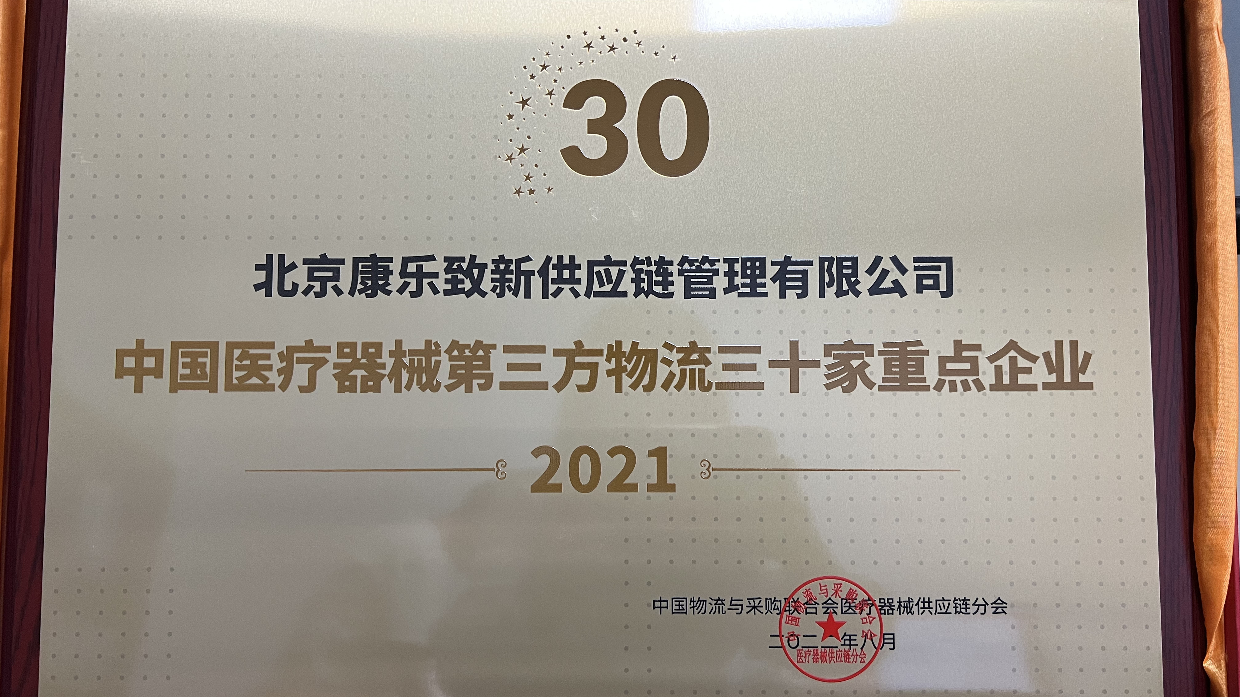 建發醫療北京康樂致新榮獲“2021年度中國醫療器械第三方物流三十家重點企業”榮譽稱號